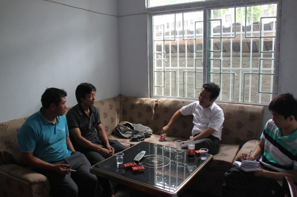 圖六:在萬興村奮勇村民組另一茶葉加工大戶張恩國(左一)家,金循總經理正在與村干部和村民們座談。