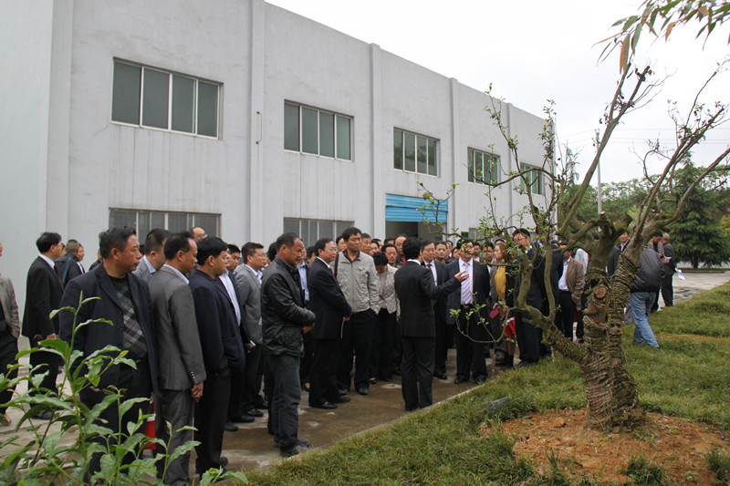 4月20日早,大會召開前,縣委書記魏在平率四家班子領導及全縣茶葉界人士三百余人到公司參觀,圖為公司董事長金循在生產車間門口向各位客人介紹公司情況。