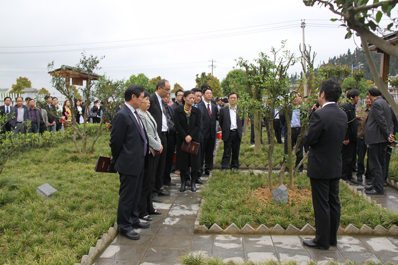 4月20日早,大會召開前,縣委書記魏在平率四家班子領導及全縣茶葉界人士三百余人到公司參觀,圖為公司董事長金循在陪同各位客人參觀古茶樹園。