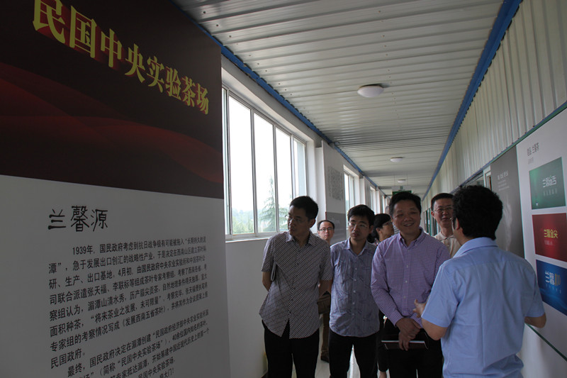 在車間參觀走廊,金循正向丁琨一行介紹湄潭茶產業的發展歷史。抗戰期間,民國政府在湄潭設立的全國第一個“中央實驗茶場”是湄潭茶產業走向現代化的開端之一。