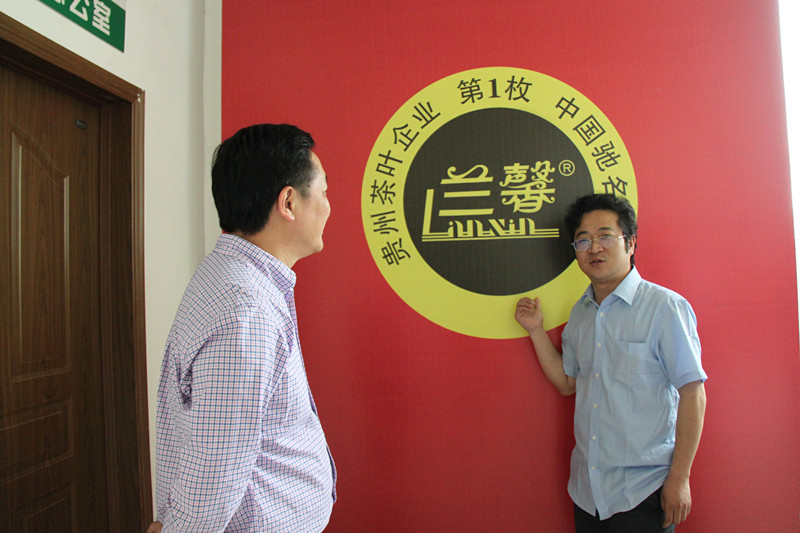 金循正在向丁琨匯報“蘭馨”商標的使用和管理情況。公司持有的“蘭馨”商標于去年12月31日通過國家工商總局認定,榮膺貴州茶葉企業的第1枚中國馳名商標。