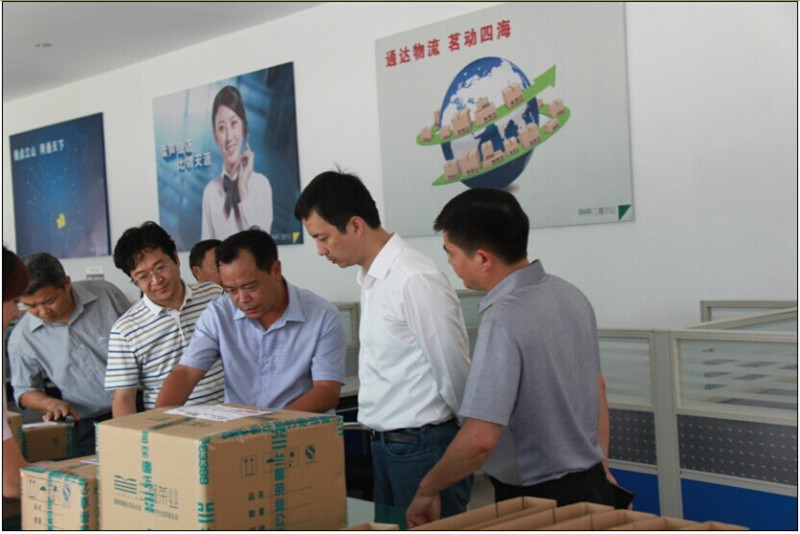 在電子商務部,副書記馬寧宇看即將發往各地的產品