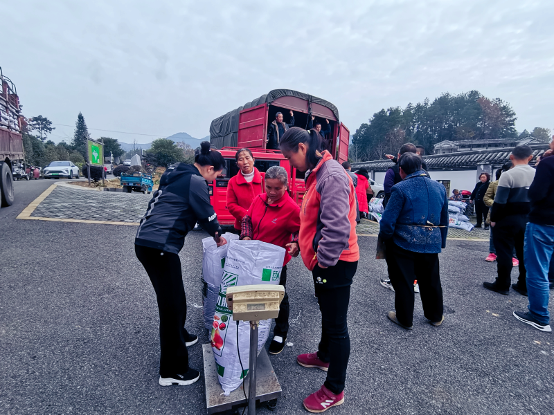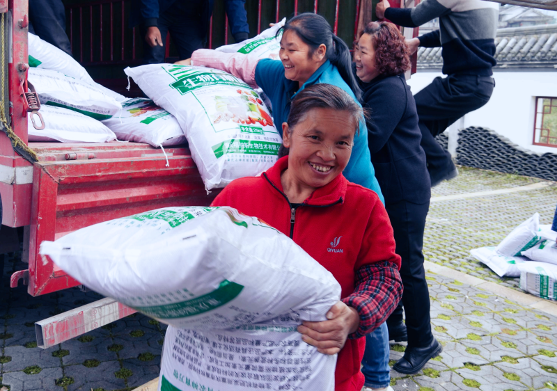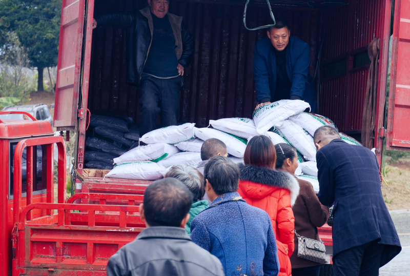 村民們開著小三輪或小貨車陸陸續續前來領取肥料,82噸有機復合肥送到近200戶農戶手中。大家欣喜不已,紛紛表示感謝蘭馨茶業的關懷支持。