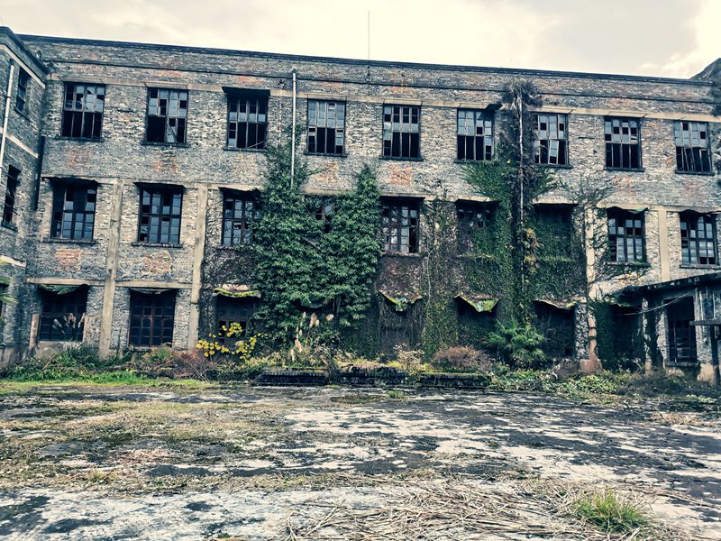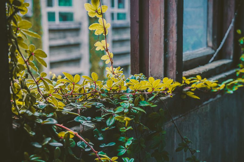 窗臺幾乎被綠藤籠罩,牽藤引蔓、穿石繞檐、努力生長。只留下幾個黑洞洞的窗戶,詫異地打量著這個安靜的世界。