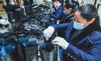 1月19日晚上11點,蘭馨茶業的包裝車間里,工作人員戴著口罩正忙碌著,趕制一批馳援珠海的茶葉。即便是熬夜加急,大家依舊積極有序地進行包裝、認真作業。