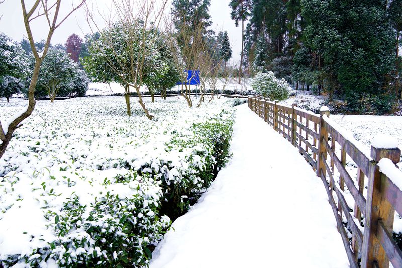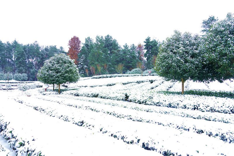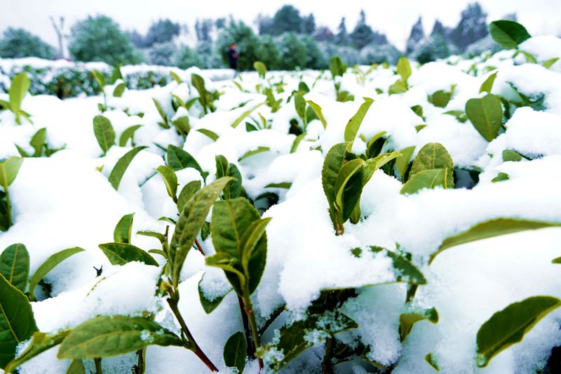 春生夏長,秋收冬藏。每年的二月中旬到四月是春茶的采摘期。人們都說“一兩春茶一兩金”,立春過去了半月有余,茶農們最有盼頭的時節已經來到,茶園里卻還是一片白。茶樹躲藏在雪下,悄悄和春天玩著捉迷藏。植物、種子依舊休眠,默默儲存能量,萬物蘊藏的生命不知道哪一天才迸發出來。