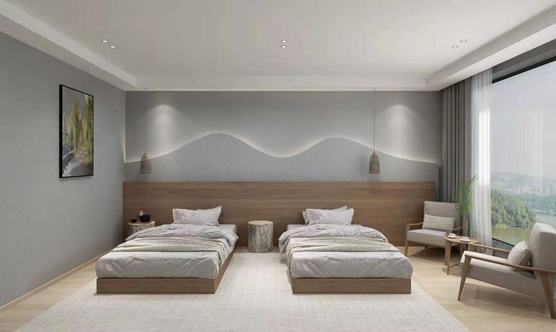 浪漫的輕紗飄過,落地式的透明窗,抬眼便瞧見綠色的世界。