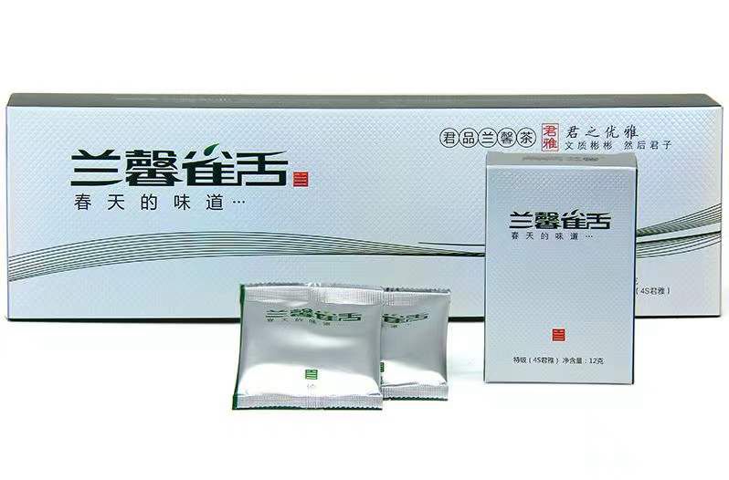 蘭馨雀舌采摘自清明節前的鮮嫩芽葉,經過殺青、理條、脫毫等工序制成。定位于“時刻鮮純的明前獨芽茶”、“春天的味道”、“在舌尖舞蹈的春芽”,是高端綠茶的典范。根據色澤、顆粒勻整度等可分為:君頂雀舌,君尚雀舌,君雅雀舌,君品雀舌4種類型。