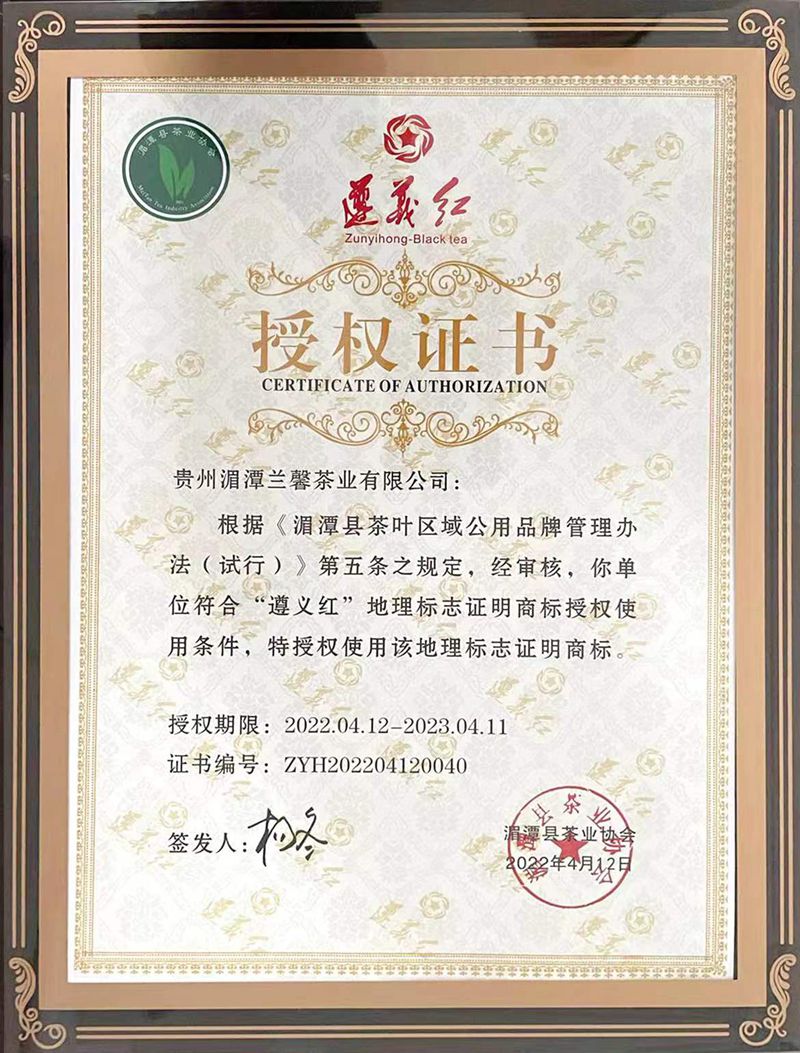 蘭馨茶業獲得“遵義紅”“湄潭翠芽”公用品牌授權、“湄潭翠芽”“遵義紅”五星級標識使用權。