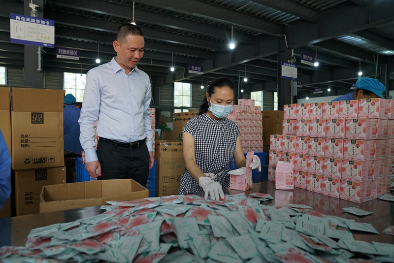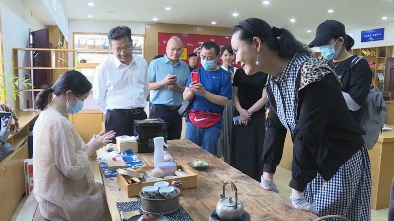 在蘭馨茶業,董事長金循向于文華老師詳細介紹了公司發展歷程、茶葉品類、茶葉制作工藝、茶葉銷售等情況。于文華老師認領了“我有一壇醬香茶酒”專屬封壇珍藏茶酒“吃月亮”。
