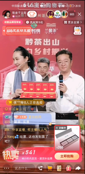 16日,在快手“歌者于文華”直播間里,蘭馨茶業攜手于文華、西南民族大學博士生導師、研究員、“網紅縣長”陳燦平開啟茶葉專場直播,向全國網友推介蘭馨茶。