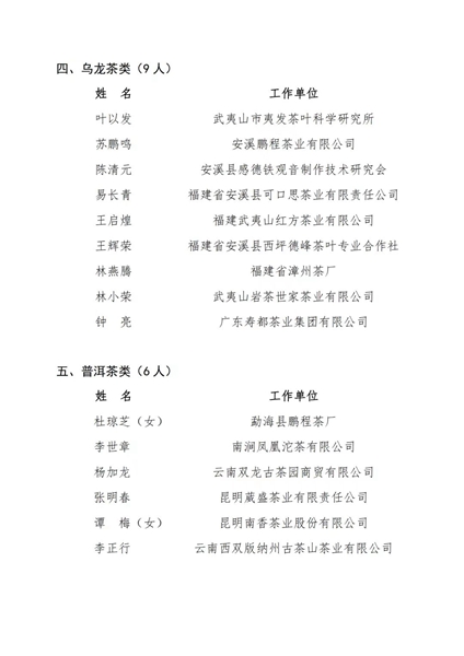 據了解,中國茶葉流通協會自今年3月份開展推選活動以來,引發了全國各茶葉主產區相關部門和從業人員的熱烈關注和積極參與,共有1231人報名。在中茶協經過資料審核、行業征求意見、專家組綜合評議等多項流程后,最終評定出綠茶、紅茶、黑茶、烏龍茶、普洱茶、白茶、黃茶等八類“制茶大師”,共計53人,貴州4位茶人入選。