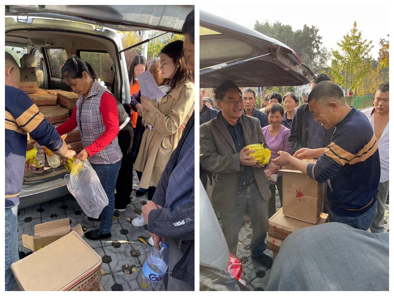 “別著急,一個一個來……”,“老人家,你的是幾包呀?”蘭馨茶業董事長金循與抖音達人“貴州費爺”一起來到現場幫助茶農將肥料抬上車,與茶農親切交流。