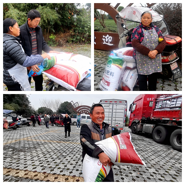早已等待多時的茶農們你一包、我一包地把肥料放在自家的摩托車、小三輪上,愉悅心情溢于言表。一農戶高興地說,“跟往年一樣,蘭馨公司每年都要統一買肥料運到這里來,我家種得少,今天領了8包茶葉肥料,感謝蘭馨公司!”