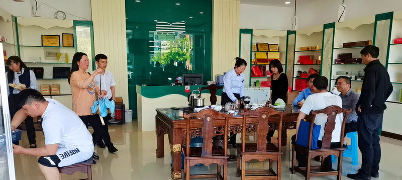 4月14日,遼寧(ning)客商(shang)一行深入公司精制車(che)間、包(bao)裝車(che)間、產品展示大廳實地參觀,并(bing)駐足(zu)手工(gong)制茶現場,品嘗現炒的手工(gong)茶。