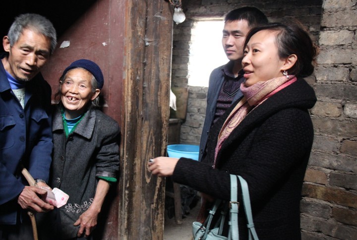 圖:11月21日,蘭馨茶業有限公司財務部經理盧燕、副經理甘業飛在困難戶任遠華老人家中了解情況。