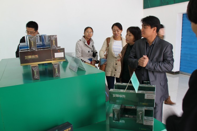 圖:來自江西上饒的客人在詳細了解蘭馨茶業的產品