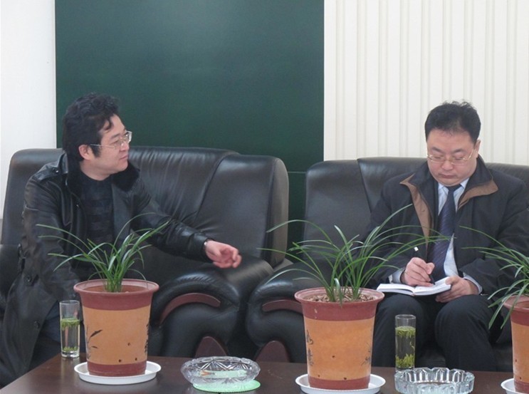 圖:座談會上,蘭馨茶業董事長、總經理金循(左)和中共湄潭縣委常委、副縣長向波(右)就企業發展中遇到的一些難題進行交流和探討。