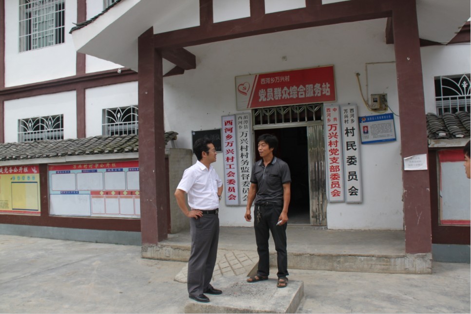 圖一:公司董事長、總經理金循與萬興村副支書石宗江(右)在萬興村委會門前交談。