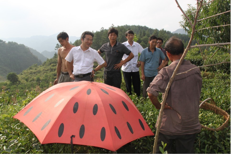 在廖明噸的茶園里,金循總經理發現了不少問題,提出了很多意見,并當場電話聯系農科專家,為廖明噸解決技術難題。