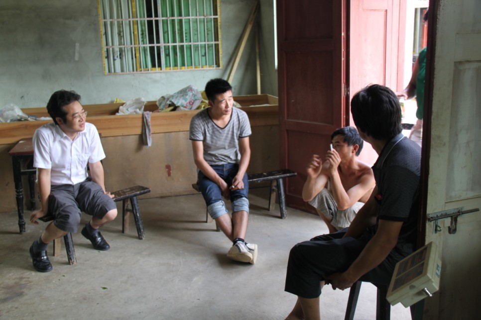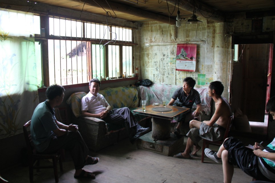 圖六:在萬興村奮勇村民組另一茶葉加工大戶張恩國(左一)家,金循總經理正在與村干部和村民們座談。