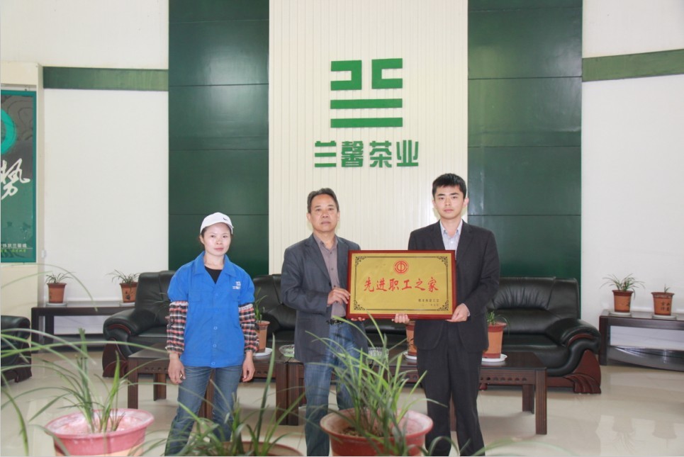 圖:公司制茶工人丁先晶同志(右)獲遵義市總工會授予的“金牌工人”榮譽稱號