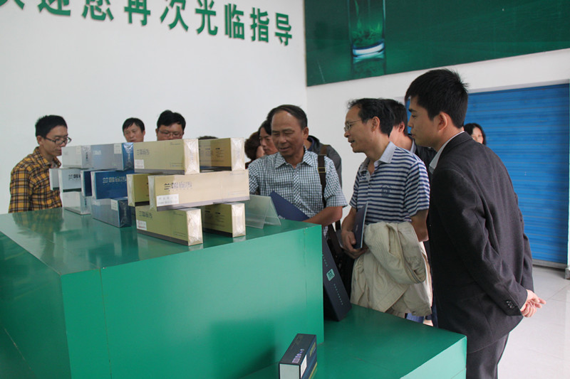 圖:余繼忠所長(右二)和隨行人員在了解蘭馨產品。