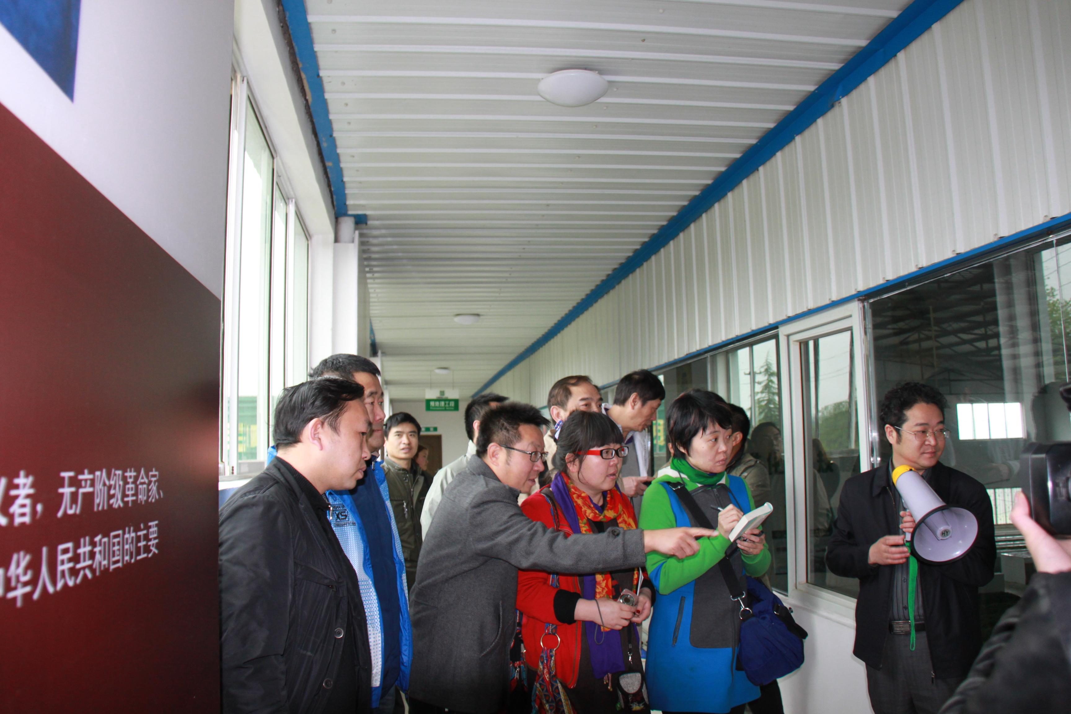 公司總經理金循陪同前來采風的作家參觀公司生產線,圖中右二為北京作家協會駐會專業作家周曉楓,右三是河南省文學院專業作家、河南省作協副主席喬葉。