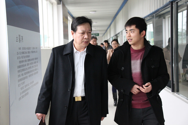 公司總經理金循(前左)陪同錢忠明一行在公司參觀