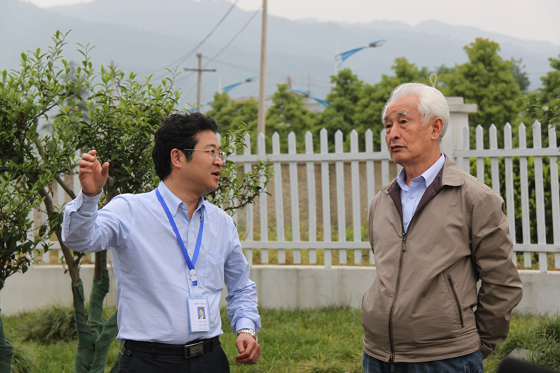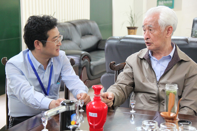 董事長金循先生(左)給季克良先生(右)講述公司古茶樹的故事