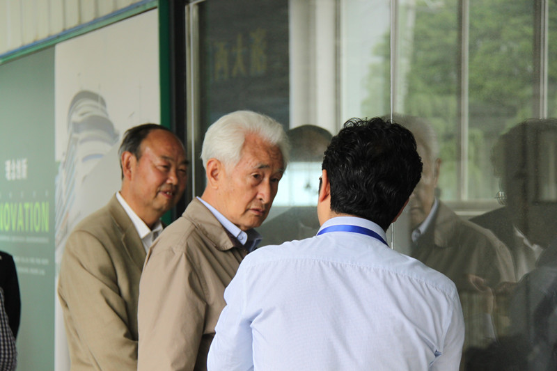 原貴州省人大副主任庹文升先生(左)、國寶級釀酒大師季克良先生參觀蘭馨公司生產車間