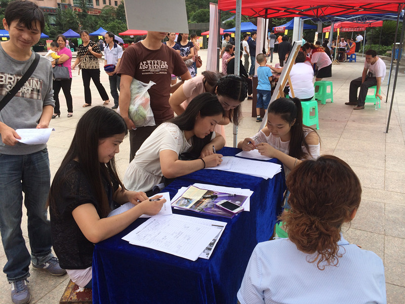 求職者在蘭馨茶業招聘會臺前填寫簡歷