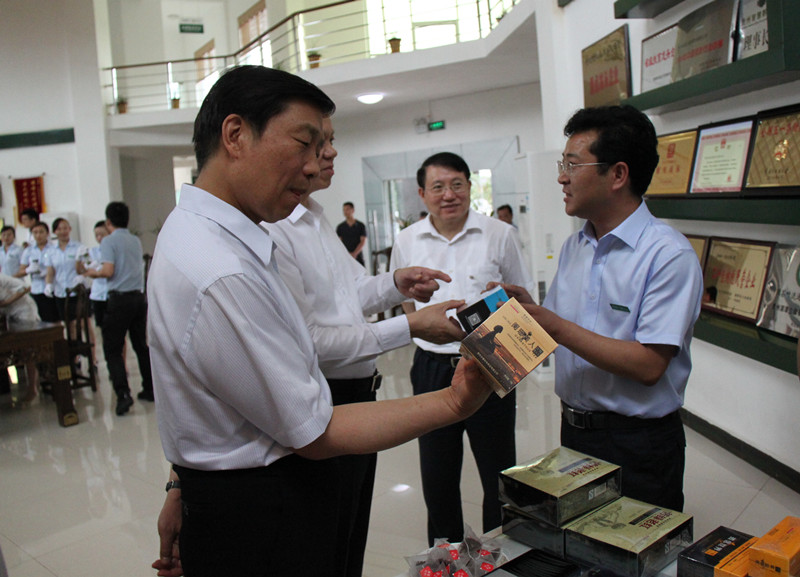 15時20分,李源潮副主席抵達公司名優茶綜合車間,仔細察看殺青、揉捻、烘干、色選、包裝等制茶工藝,不時詢問公司生產經營情況,對公司“君子若蘭,德才雙馨”的企業精神和秉持做人、做產品、做企業“不以無人不芳,不為困窮改節”的君子之守表示贊許;對公司依托良好生態環境,攜手農民大力發展茶產業的做法表示肯定;對公司銳意創新,引領貴州茶葉加工工藝及裝備水平提升所取得的成就表示贊賞。在電子商務部,李源潮副主席與“黨員模范崗”前的蒙永紅副總經理親切握手,詳細詢問公司電子商務的有關情況。李副主席對公司發展電子商務給予充分肯定,他說,通過電商平臺,既可以在家門口把貴州好茶銷往全國各地,還可以讓消費者得到更多的實惠,是好做法!在公司展廳,李源潮副主席詳細了解遵義紅、湄潭翠芽、蘭馨雀舌的品牌建設情況,希望省市縣認真研究公共品牌和企業品牌相互融合的好辦法,打造像茅臺一樣知名的茶葉品牌。在蘭馨時尚茶品展臺,李副主席拿起“相遇太美(玫瑰紅茶)”、“面朝大海(桂花烏龍茶)”、“微信世界(檸檬綠茶)”等調味茶認真察看,勉勵公司要充分尊重90后、00后群體的消費主張,讓中華茶文化薪火相傳、發揚光大!