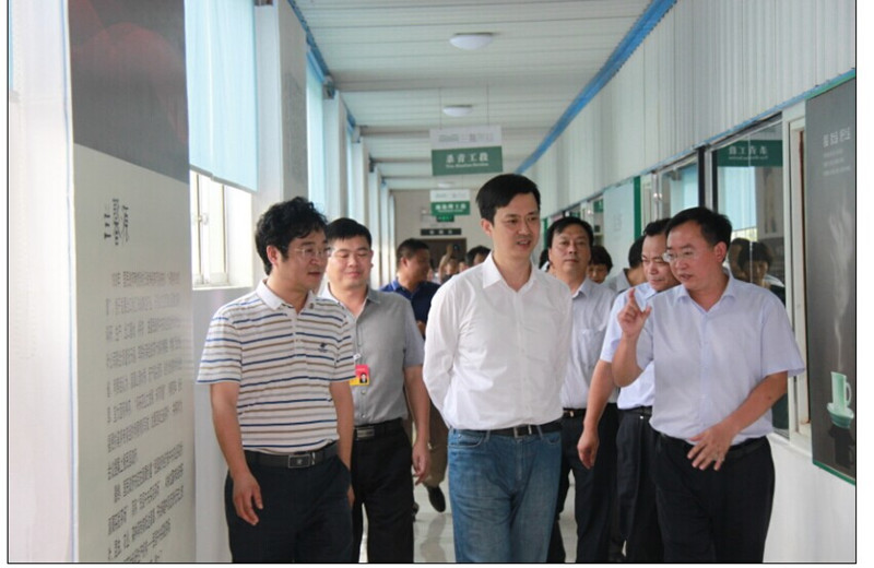 在大廳,董事長金循給馬寧宇副書記介紹了公司“蘭馨時尚”系列茶品,金循說:“未來是年輕人的時代,讓未來引領未來”,是公司發展得導向標,也是順應時代,副書記馬寧宇點頭肯定。