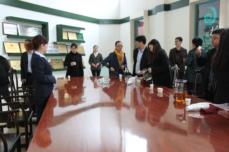 在大廳,公司綜合部負責人陳琴邀請干部學員們品茗,陳琴說:現在正值春茶時節,我謹代表蘭馨茶業向各位學員們送上“春天的味道”,學員們紛紛表示感謝。