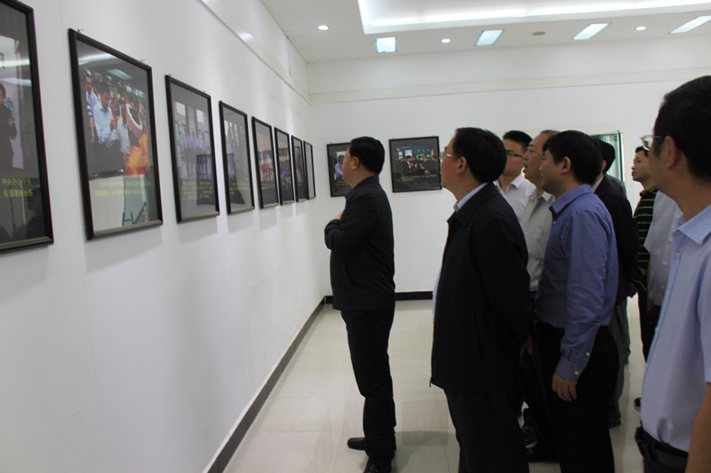 王曉光書記駐足在各地領導調研蘭馨公司留影紀念墻前