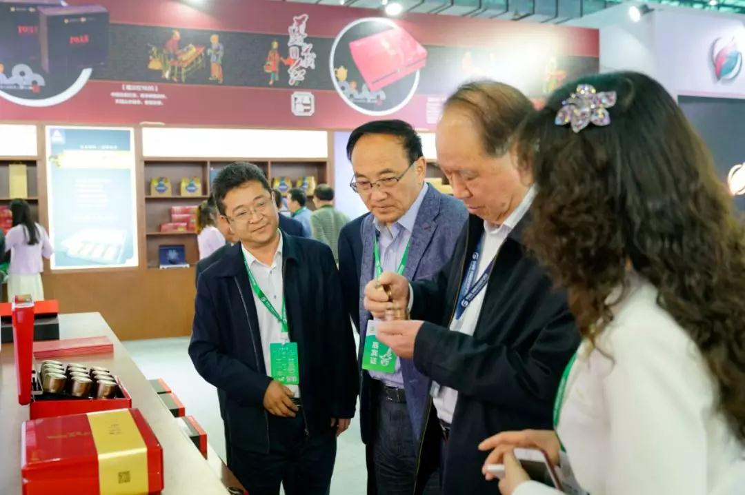 開幕式后,貴州省委常委、省委宣傳部部長慕德貴等各級領導,中國工程院院士、茶學家陳宗懋等茶學專家蒞臨遵義館品鑒遵義天賜好茶!蘭馨茶業董事長金循向其匯報遵義茶產業。