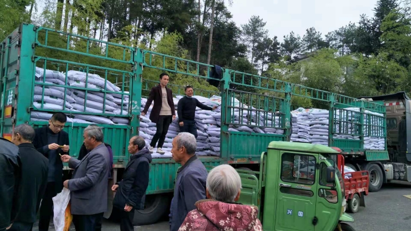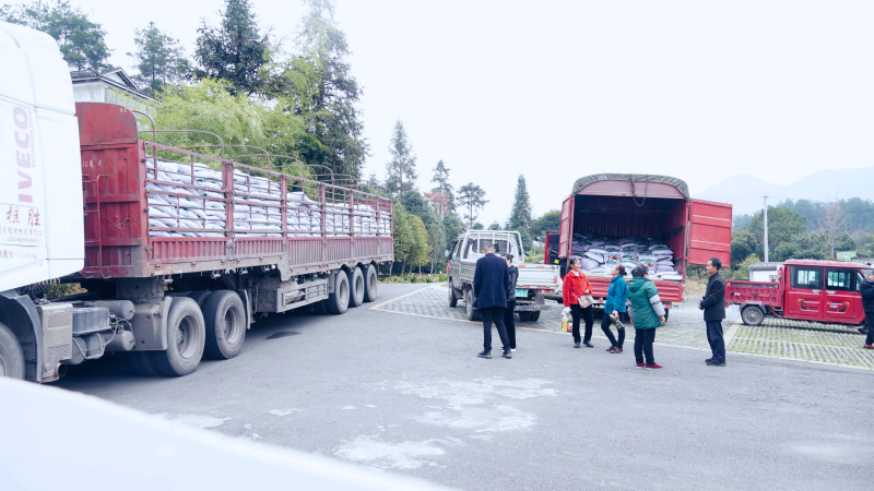 村民們開著小三輪或小貨車陸陸續續前來領取肥料,82噸有機復合肥送到近200戶農戶手中。大家欣喜不已,紛紛表示感謝蘭馨茶業的關懷支持。