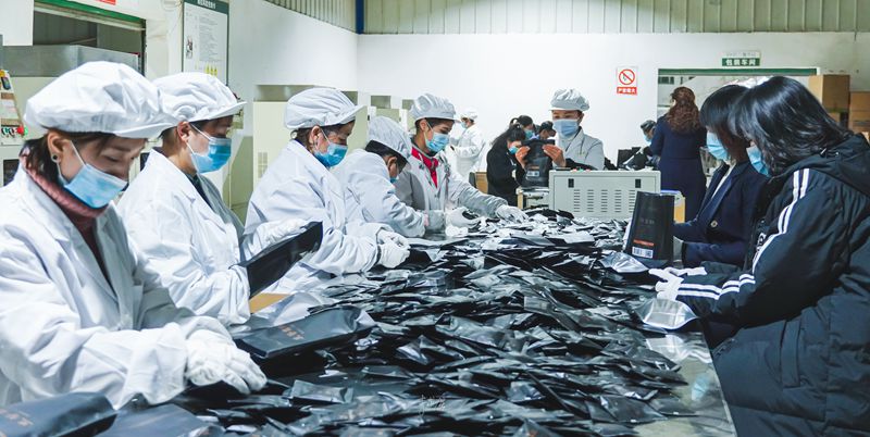 為全力保障捐贈物資的供應需求,工作人員們加班加點,電商、財務部門的員工也自發參與打包。僅用時12個小時,包裝2000包蘭馨巖紅茶葉。