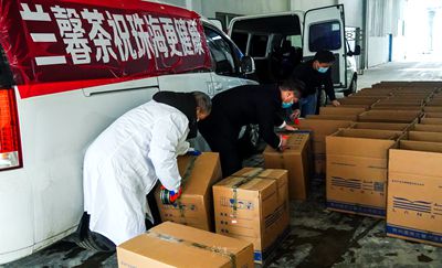 20日下午三點,蘭馨茶業快速趕制的價值20萬元的捐贈物資已交付到縣茶產業發展中心,統一開赴珠海疫區。