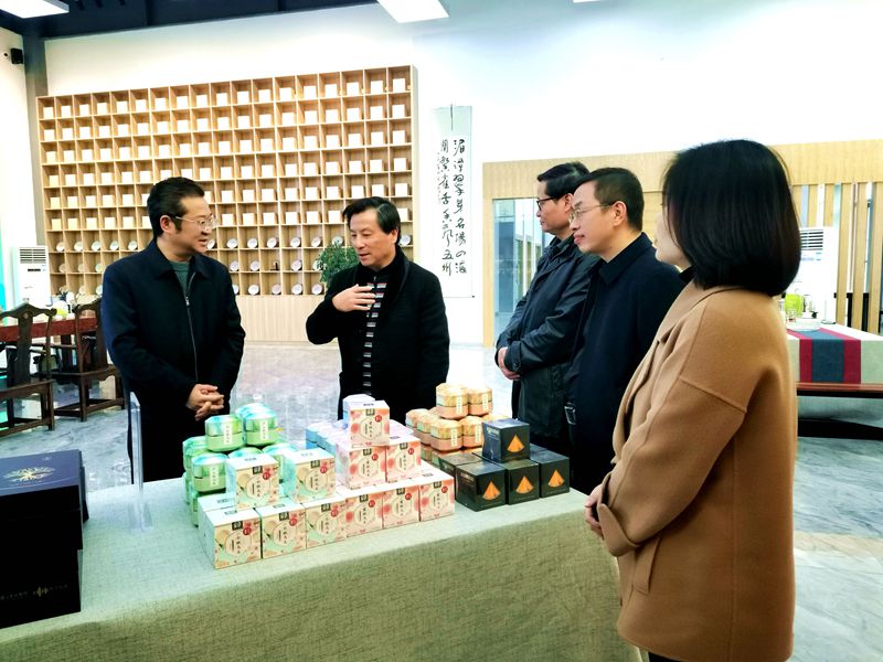走訪調研中,金循董事長詳細介紹了蘭馨茶業的主營業務及蘭馨雀舌、蘭馨金尖、吃月亮、老妖怪等系列茶產品,講述蘭馨及旗下品牌“背后的故事”。同時,就企業發展經營問題,金循董事長與楊承志副檢察長進行了深入細致的交流。