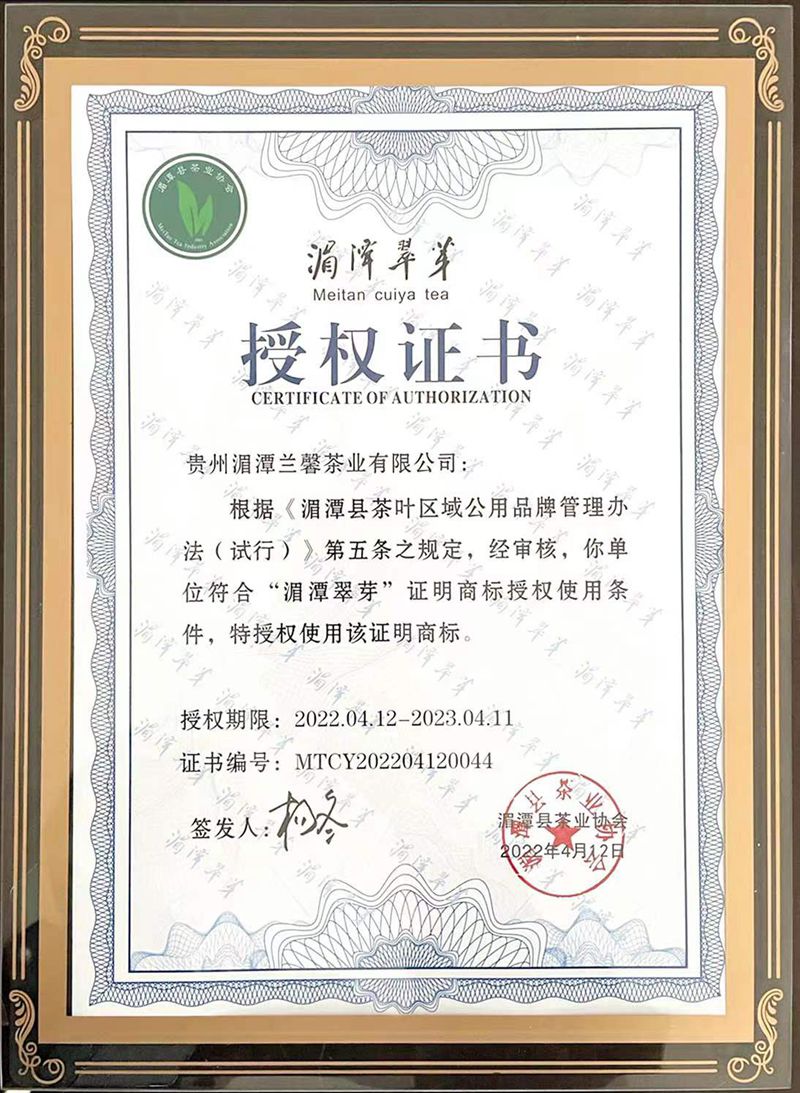 “湄潭翠芽”和“遵義紅”是湄潭縣分別于2007年和2011年注冊的兩個公用品牌,被列為貴州省“三綠一紅”重點品牌,是國家農產品地理標志保護產品。蘭馨茶業作為中國茶葉行業百強企業,將嚴格遵守《湄潭縣茶葉區域公用品牌管理辦法》,認真落實管理辦法中“湄潭翠芽”“遵義紅”公用品牌相關標準。堅持“創新、合作、誠信、擔當”價值觀,充分發揮品牌效應,提升品牌價值,規范品牌市場。打造從茶園到茶杯綠色、健康的生態供應鏈,做品質過硬的蘭馨茶。