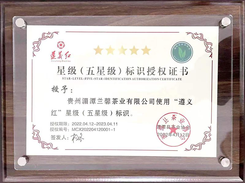 蘭馨茶業獲得“遵義紅”“湄潭翠芽”公用品牌授權、“湄潭翠芽”“遵義紅”五星級標識使用權。