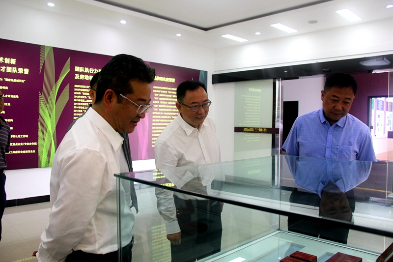 在董事長金循陪同下,魏在平副主席一行參觀了公司精制車間、包裝車間、文化展示廳、圣心茶酒廠及產品展示廳。