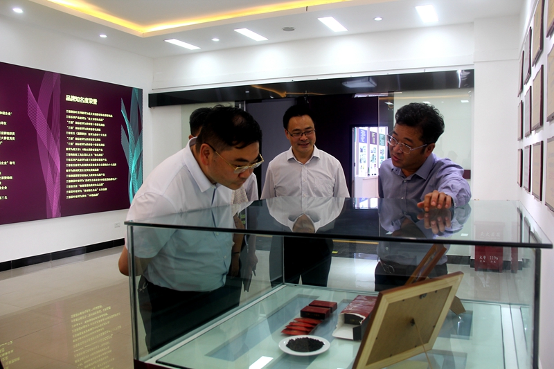 在董事長金循陪同下,考察組一行走進公司精制車間、包裝車間、文化展示廳、產品展示廳,金循詳細介紹了蘭馨茶業發展經營情況。