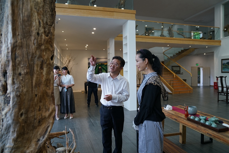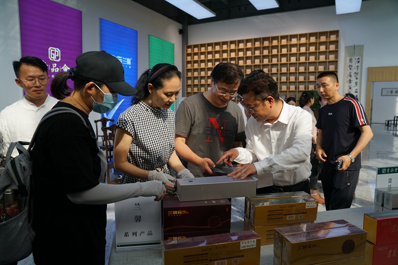 在蘭馨茶業,董事長金循向于文華老師詳細介紹了公司發展歷程、茶葉品類、茶葉制作工藝、茶葉銷售等情況。于文華老師認領了“我有一壇醬香茶酒”專屬封壇珍藏茶酒“吃月亮”。