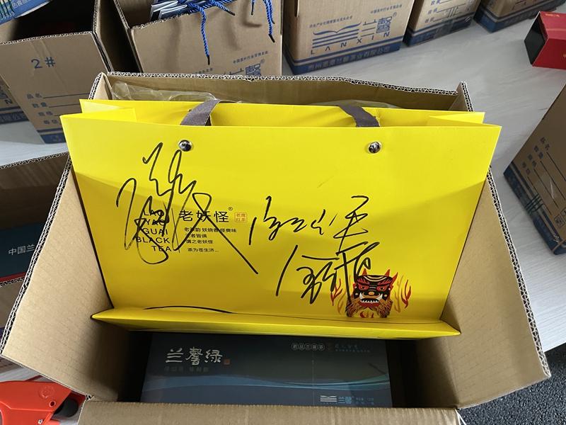 瞧,由著名歌唱家于文華老師,西南民族大學博士生導師、研究員、“網紅縣長”陳燦平,蘭馨茶業董事長金循簽名的茶葉也在其中,隨機發貨,不知花落誰家。