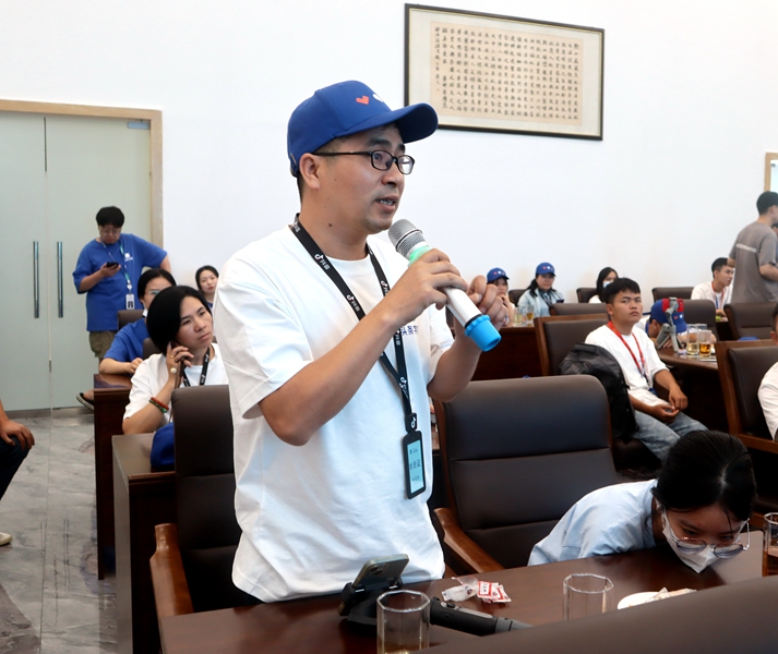 隨后交流會上,董事長金循與訓練營師生們進行了互動答疑。圍繞大家提出的綠碼產品研發初衷、”吃月亮“品牌故事及茶文化與直播電商融合、校企合作等有關問題,金循一一作了回答。交流會現場互動感滿滿。