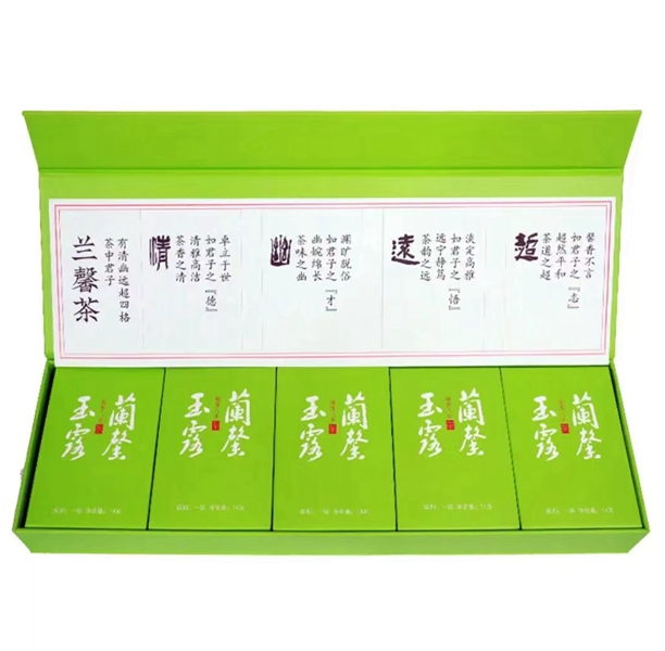 蘭馨玉露——采摘自雨前鮮嫩一芽二三葉,經過攤涼、殺青、做形等十余道工序,凝練“八步凝香法”創新工藝,用心制作而成。保留鮮葉的天然物質,每一顆茶芽都飽含春天的氣息,茶香沁人心脾!