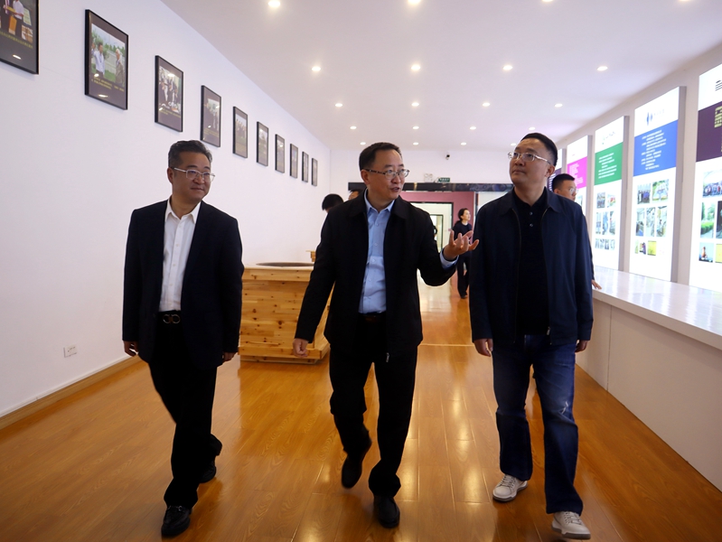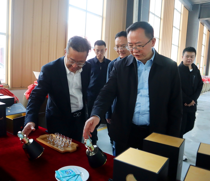 在董事長金循陪同下,調研組一行走進公司精制車間、包裝車間、文化展示廳、圣心茶酒廠參觀考察。